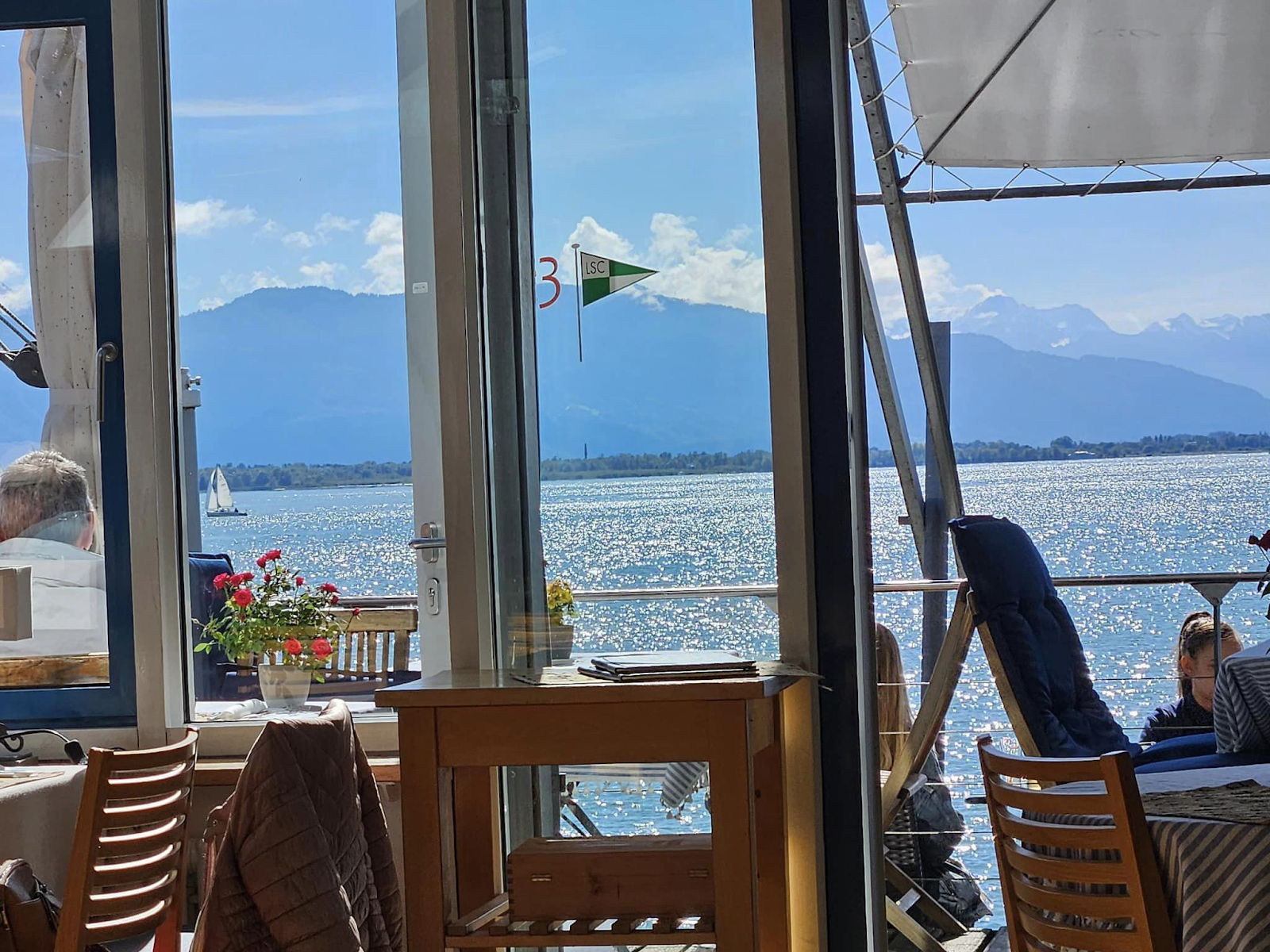 Op de foto merk je ook een zeppelin, iets wat je geregeld ziet als je aan de Bodensee verblijft. In Konstanz vind je het interessante Zeppelin museum. En volgens de reisgids is Konstanz een bruisende en aangename stad, maar wij waren daar op een verkeerde dag, in de gietende regen.